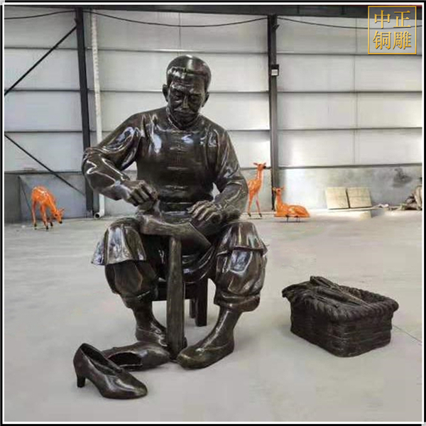 中正銅雕-街道補鞋人物銅雕塑、街道補鞋人物銅雕塑價格、街道補鞋人物銅雕塑廠家,我公司集科研、開發設計、普通鑄造、一次性整體澆鑄、精密鑄造于一體。本公司技術力量雄厚,設備,不但重視中國青銅器原有的藝術風格,還繼承了文物原有的藝術品味,在繼承和發揚古老文化的同時,更深一步為新老客戶定身量制各種銅制、鐵制工藝品等產品,曾多次受到寺廟長老和美術學院教授的好評。