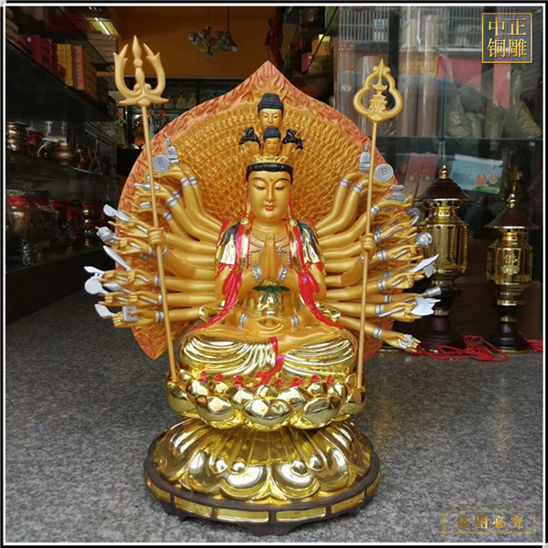 中正銅雕-貼金千手觀音菩薩銅像、貼金千手觀音菩薩銅像價格、貼金千手觀音菩薩銅像廠家,我公司實行現代化企業管理,成功導入TPS生產管理系統,形成集塑制泥塑模型、泥稿后翻制模具、翻制石膏模型、工藝師加工制作、營銷為一體化作業的生產線,加上先進的銅雕加工設備,優秀的美術設計師,雕刻經驗豐富的制作人員。